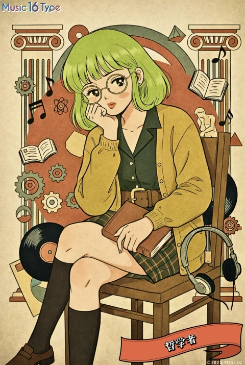 哲学者は、静けさの中に"思考の音"を聴くタイプ。流行や刺激よりも、音楽が語りかける意味を丁寧に味わう。ひとりで過ごす夜、イヤホン越しの歌詞に心を重ね、感情や人生のテーマを静かに解きほぐしていく。音楽はあなたにとって、癒しではなく「対話」。それは他人ではなく、自分自身との深い対話だ。 ──あなたの夜には、哲学が流れている。