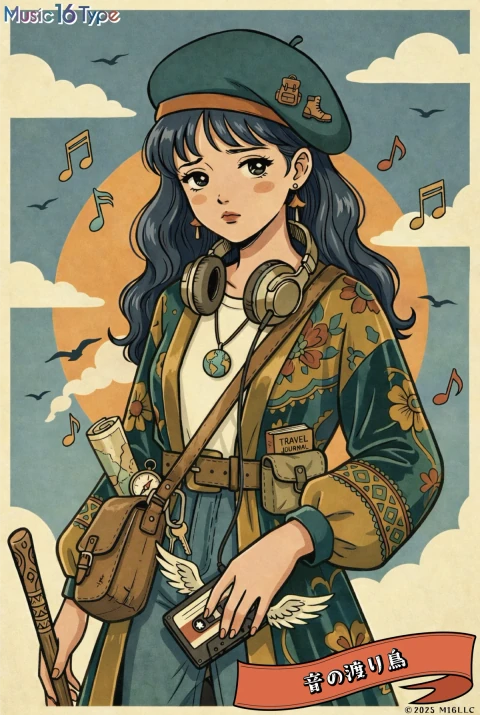 音の渡り鳥は、音の波に身をまかせるタイプ。歌詞やメッセージよりも、音の広がりや質感、空気の振動を心で感じ取る。静かな空間でヘッドホンをつけ、世界と少し距離を置いて音に溶けていく。深夜の街や雨音の中、音が呼吸のように流れる時間が好き。感情を表すより、感じることに価値を置く。 ──音楽は"聴く"より"漂う"もの。